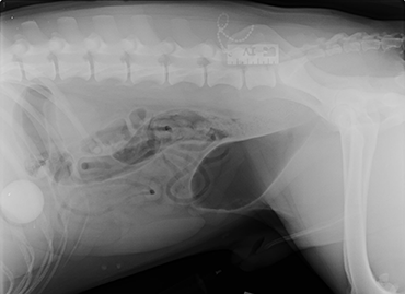 PDSA vet, Gemma Hepner, said: “We were primarily looking at the bladder, but the x-ray captured his stomach too – we could clearly see a foreign body in there.