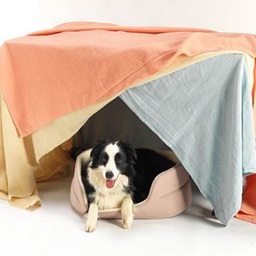 - Build a den for your pet somewhere where they feel safe. For dogs, this may be behind the sofa or under a table. Cover it with blankets and line with pillows or cushions to help absorb the noise. Cats often feel safest when high up, so a safely secured, covered cat bed on top of a wardrobe or shelf may be their preferred option. Don’t force pets to use it, but a healthy treat or praise when they do helps to build positive associations and encourages them to use it.