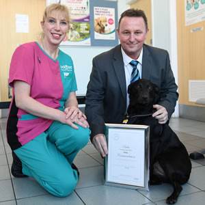 Bella was presented with the award by PDSA vet nurse Karen Jones, at a special ceremony at our Cardiff Pet Hospital, which Bella and Wayne regularly attended.