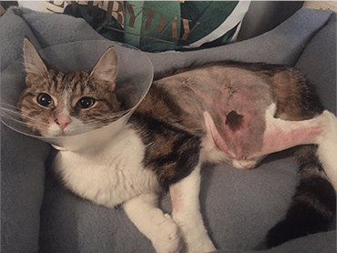 Chi was taken immediately to Brighton PDSA Pet Hospital where she was given pain relief straight away so the full extent of her wounds could be assessed. Chi had to stay overnight at the hospital and needed an operation to treat the burns to her body.
