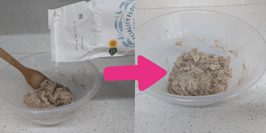 You may need to melt the coconut oil, so we suggest putting it in the microwave (in a safe container) for 30 seconds. Add more flour or oil to the mix where necessary to make sure that the dough is not too sticky.